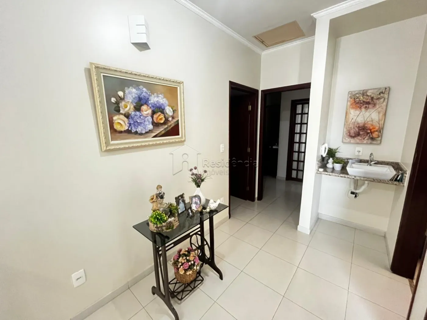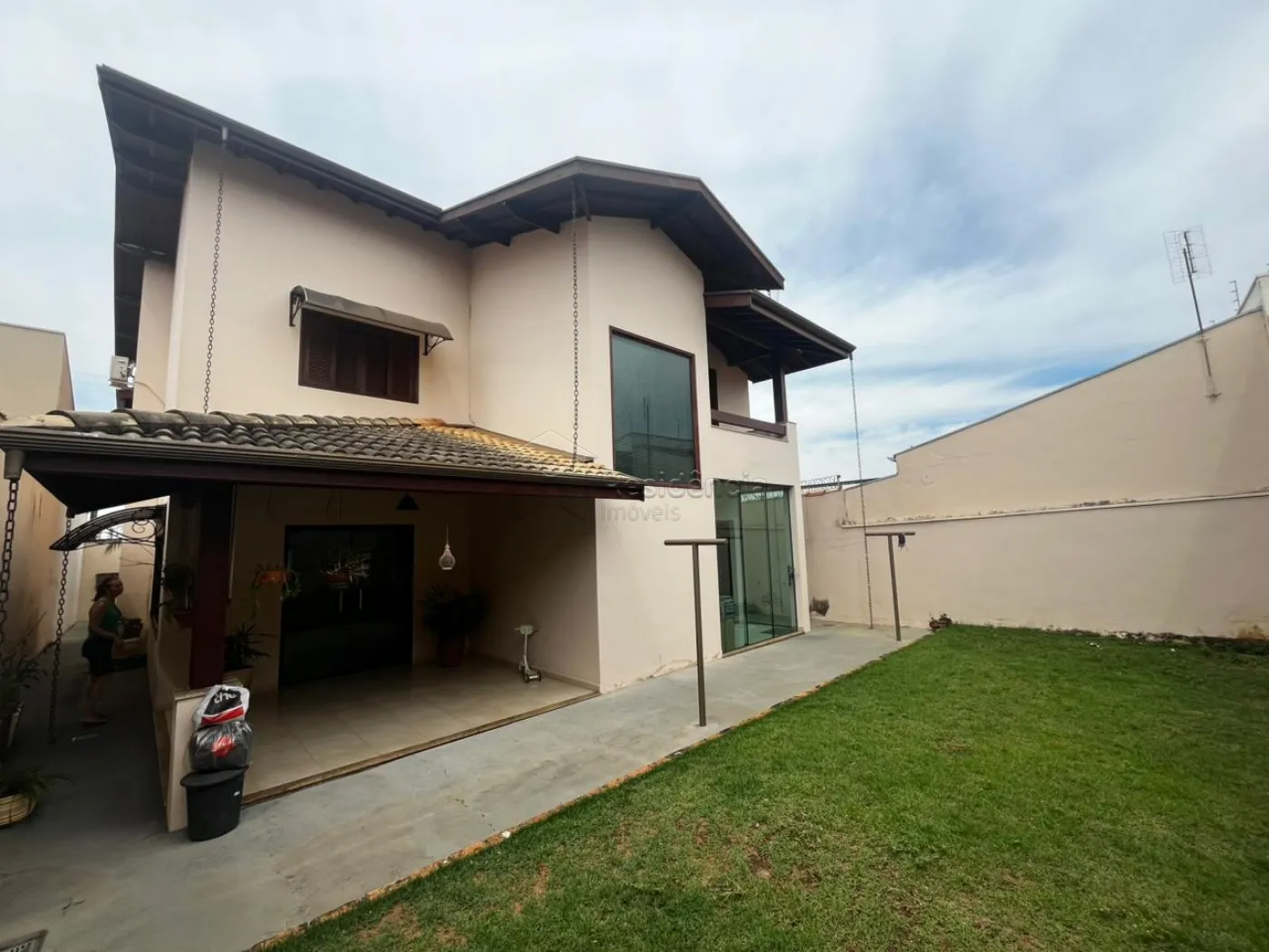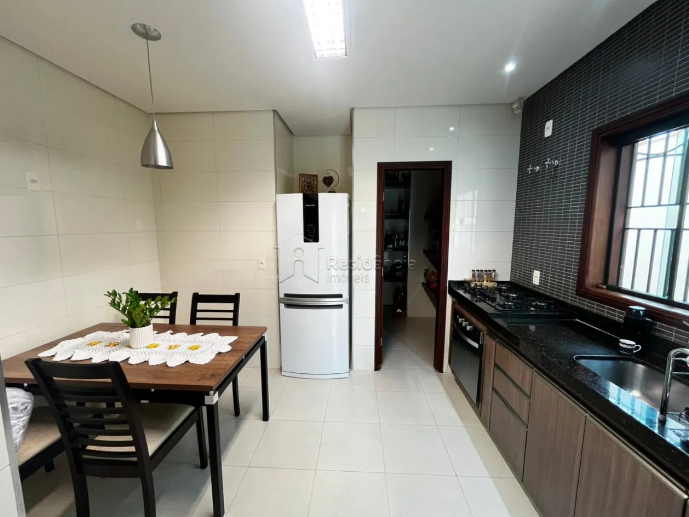 A área íntima dispõe de três dormitórios, sendo uma suíte, além de um banheiro social e área de serviço funcional. A residência ainda oferece quatro vagas de garagem, sendo duas cobertas, garantindo praticidade e segurança.