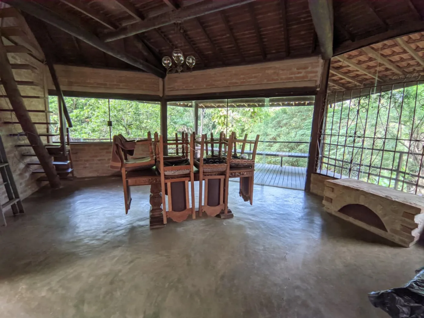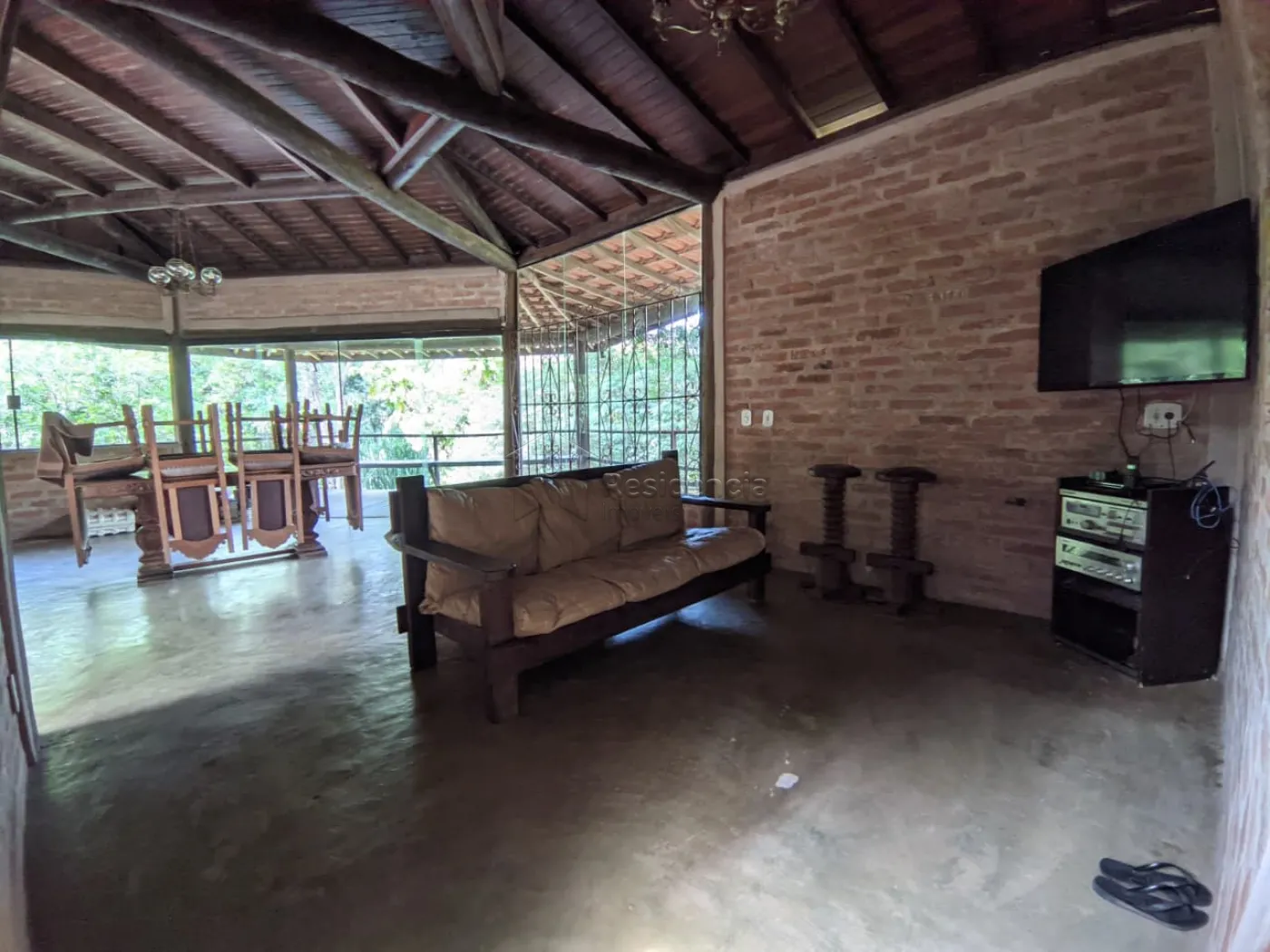 A casa é totalmente varandada em madeira, com detalhes rústicos que trazem charme e aconchego. A cozinha com fogão a lenha convida a momentos especiais em família, e a área externa com piscina é perfeita para relaxar e aproveitar os dias de lazer.