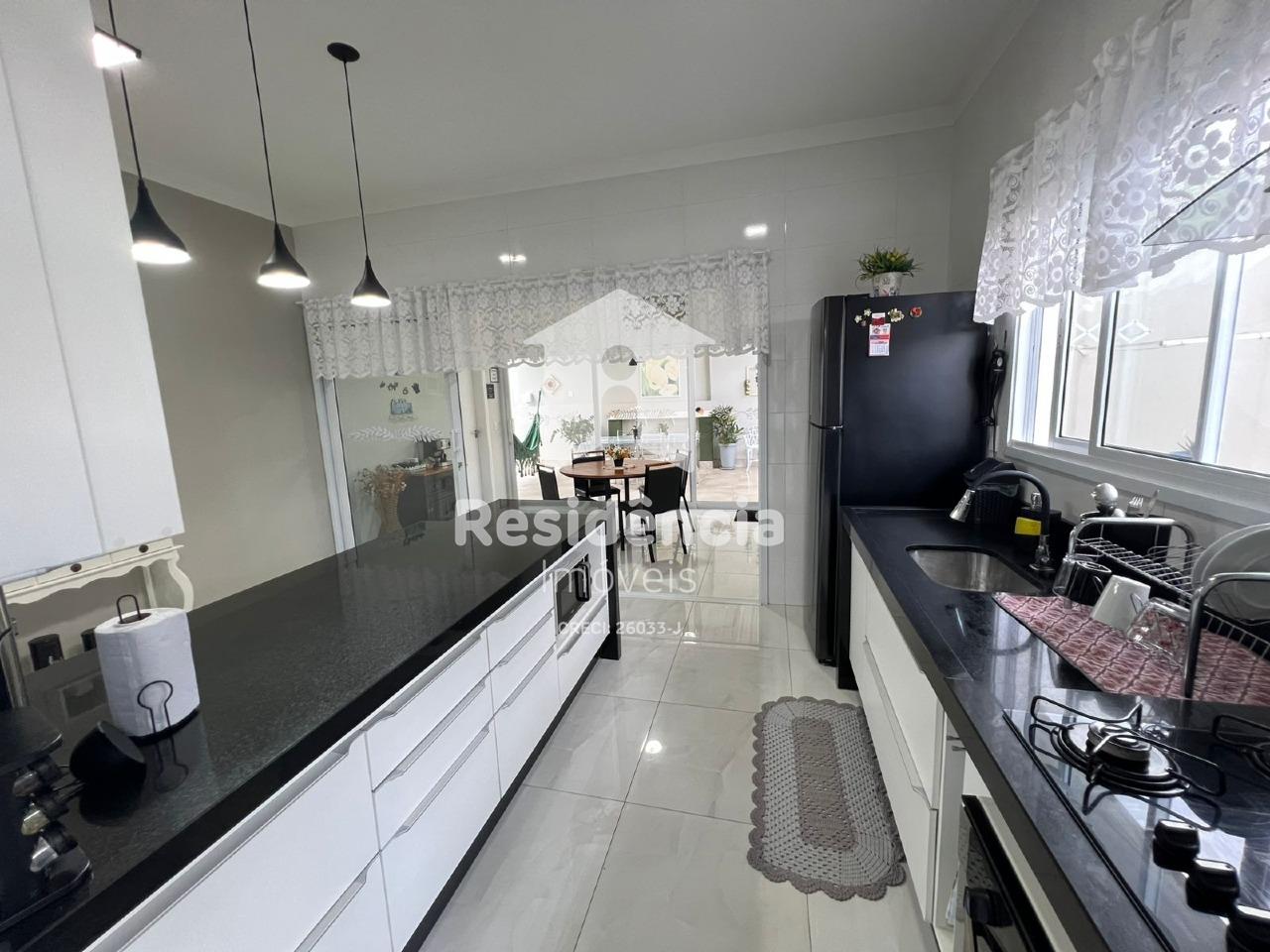 A área íntima dispõe de três dormitórios, sendo um deles suíte com closet, oferecendo mais privacidade e conforto. A casa conta ainda com área de serviço, além de uma completa área gourmet integrada à área de lazer, que possui piscina, ideal para momentos de descanso e confraternização. O imóvel oferece quatro vagas de garagem, completando esta excelente opção para quem deseja morar com qualidade de vida em um dos condomínios mais valorizados de Mococa.