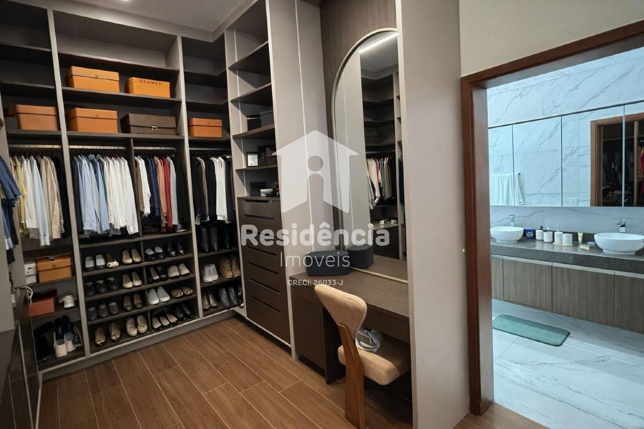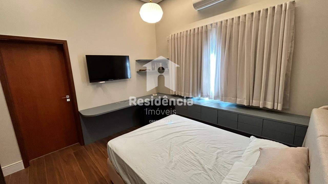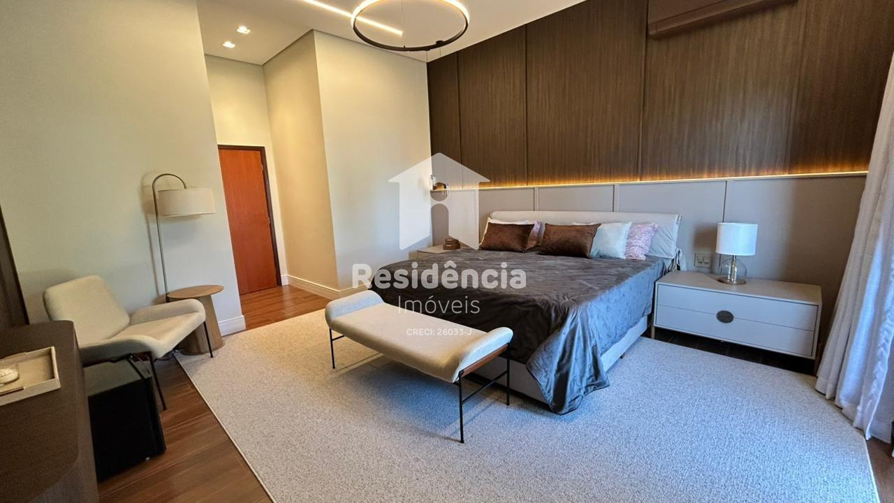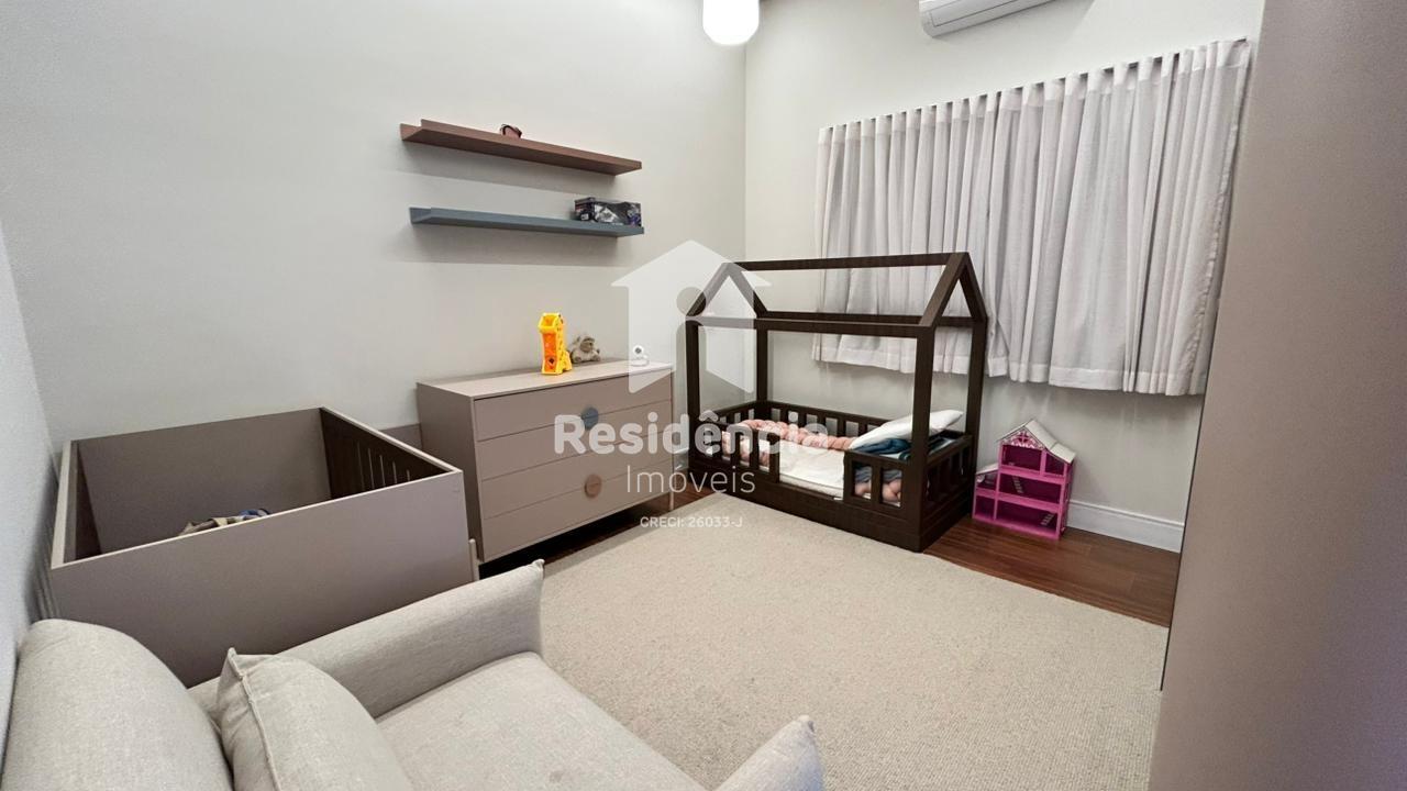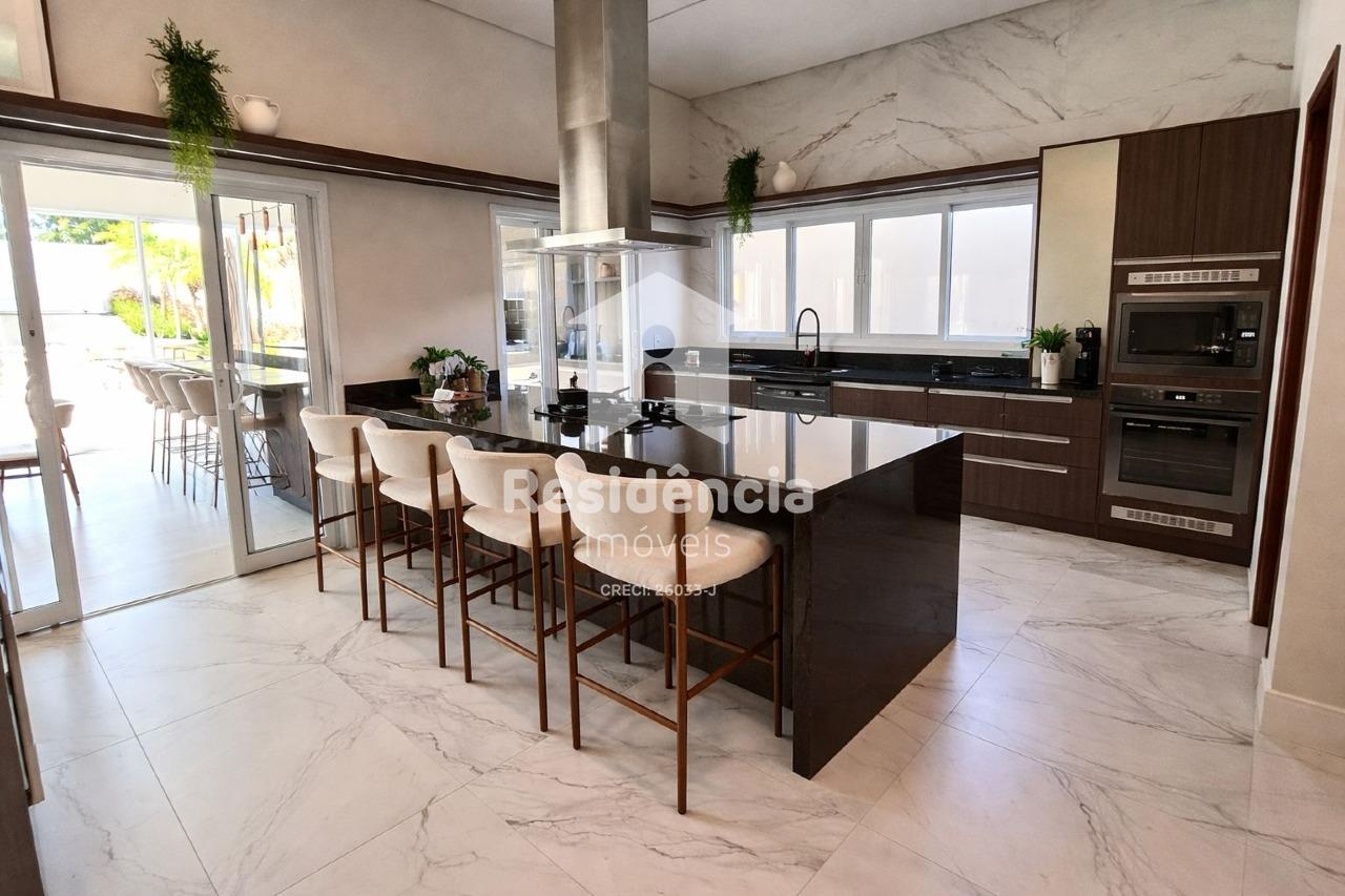 Como diferenciais, a casa conta com móveis planejados em todos os ambientes, acabamento de alto padrão, climatização inclusive na área gourmet e uma localização privilegiada dentro do condomínio.