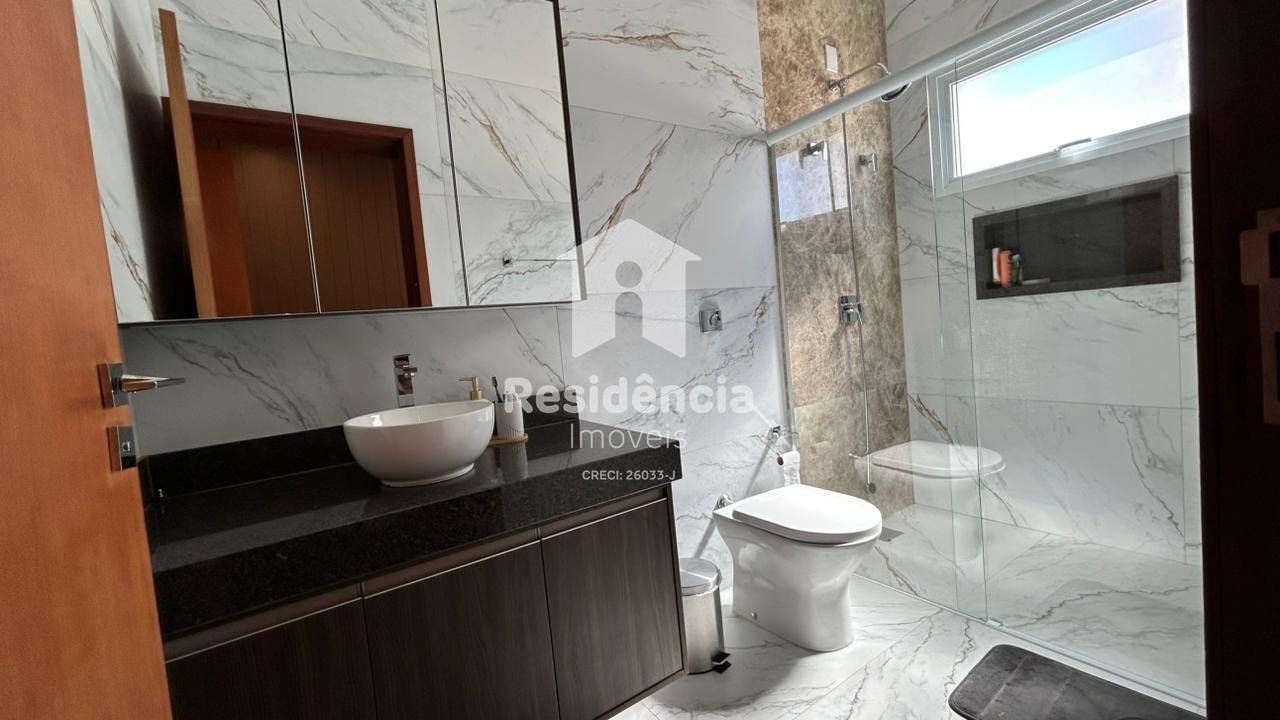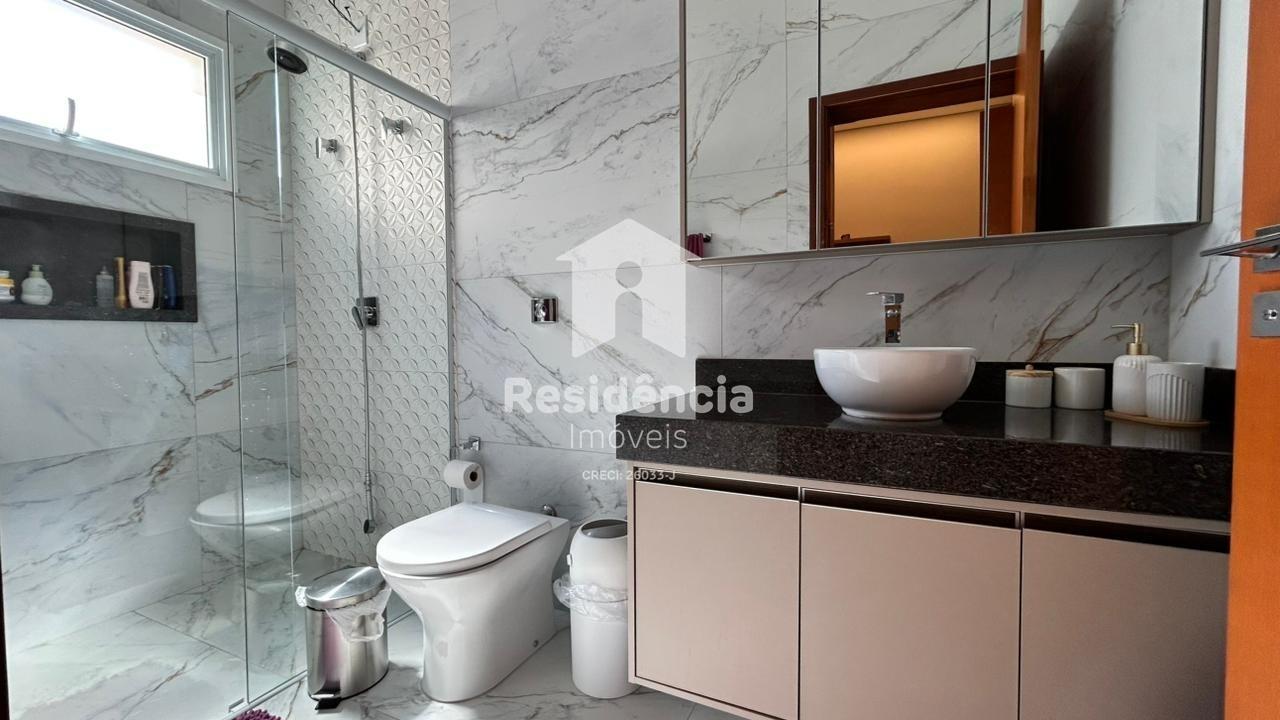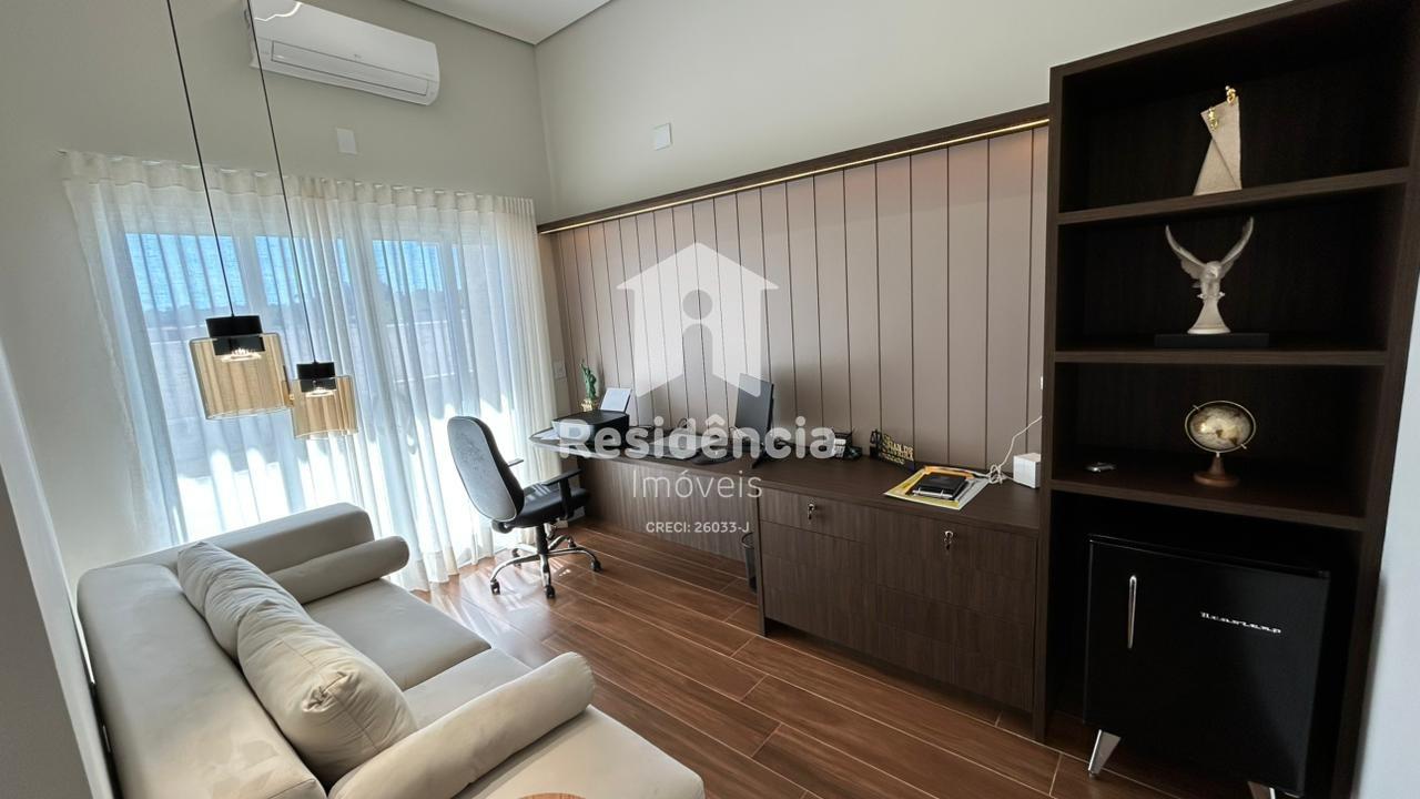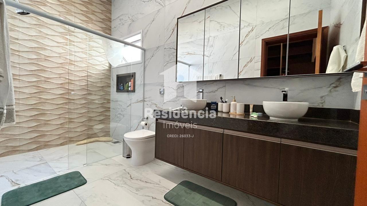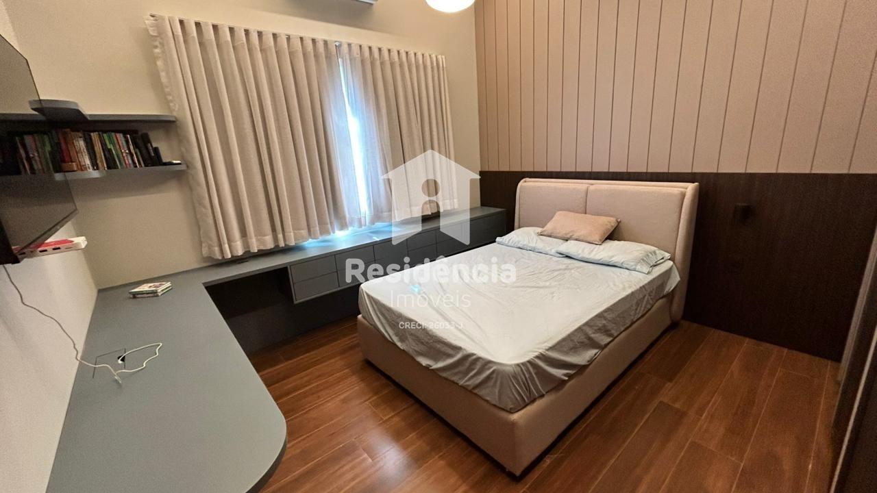 Como diferenciais, a casa conta com móveis planejados em todos os ambientes, acabamento de alto padrão, climatização inclusive na área gourmet e uma localização privilegiada dentro do condomínio.