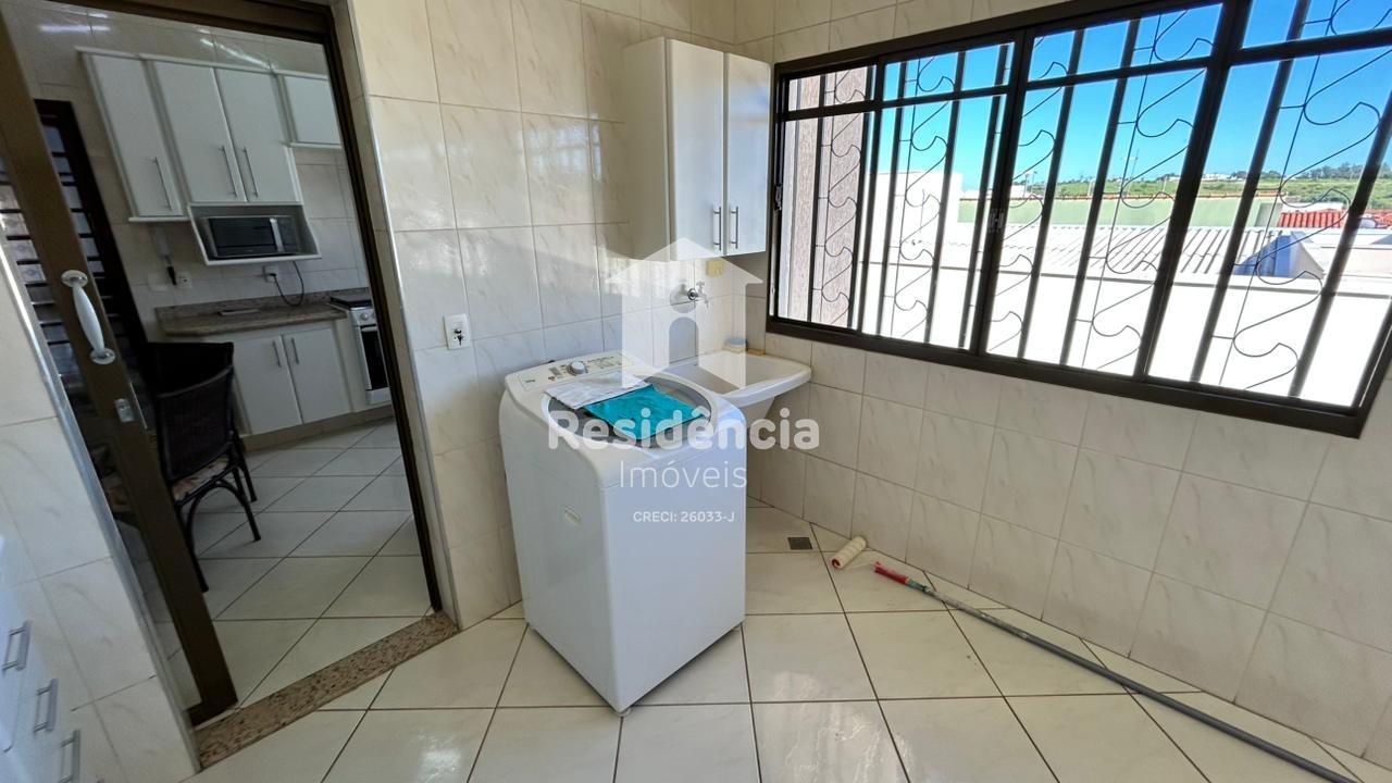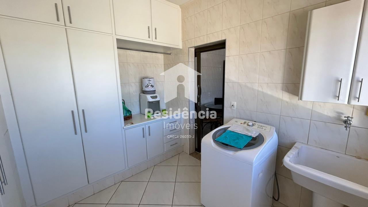 A cozinha é prática e bem equipada, contando com armários planejados, além de geladeira e fogão que permanecem no imóvel, facilitando a rotina e oferecendo praticidade desde o primeiro dia. O mezanino adiciona um toque especial à arquitetura da casa, trazendo charme e versatilidade ao ambiente. A lavanderia possui armários, proporcionando organização e funcionalidade, enquanto o banheiro social e o lavabo atendem com comodidade as áreas íntima e social da residência.